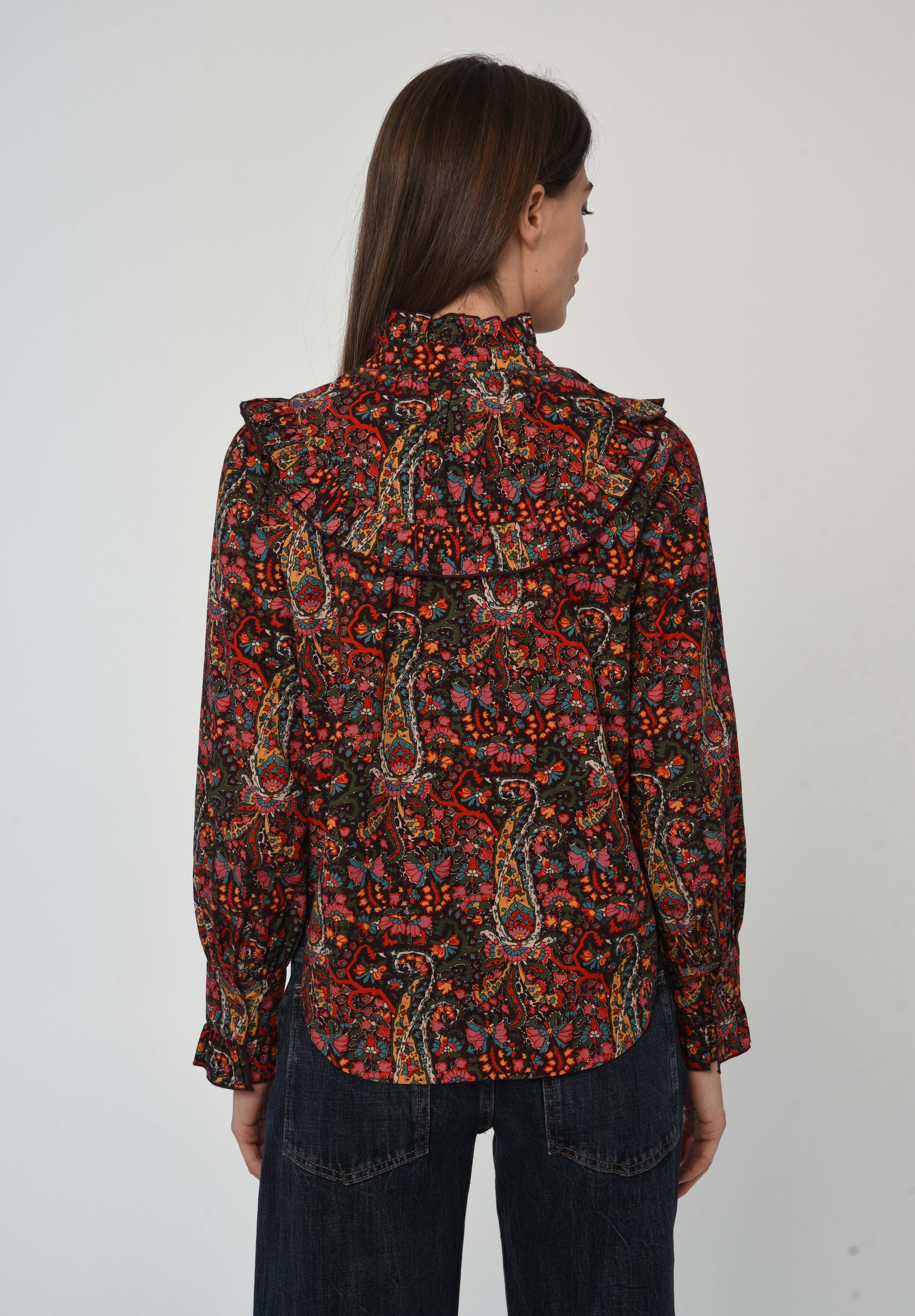 The Faylin Top in the Harliequin print is perfect for a statement top this Holiday season. Designed with details like a ruffle trim