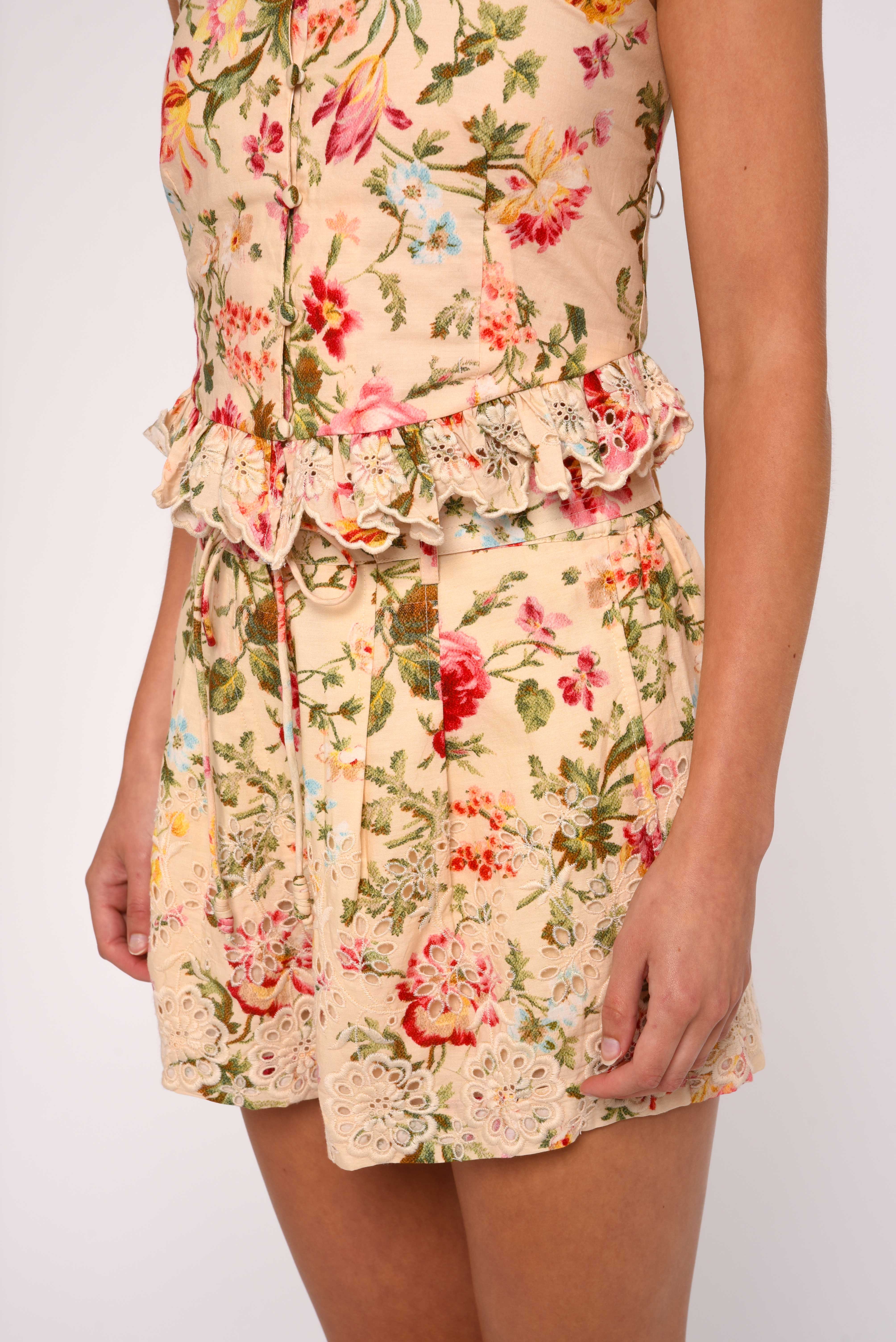 Our Best Selling Sammie Short is back! This time in our beautiful vintage inspired floral with an intricate embroidery around the hem. This short is a perfect combo of being tailored with ease having a front zipper and elastic back waist. If you want a full set, wear back to the coordinating Abigail Top.