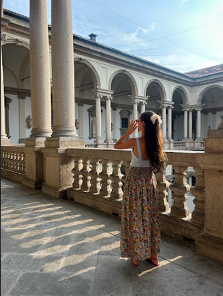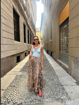 Milan, Italy — a city of romance, sunshine, and timeless style. This summer, Shanelle brought the warmth of the Sunshine Skirt in Cottage Garden Liberty Print to the cobblestone streets, blending right into the city’s effortless charm.